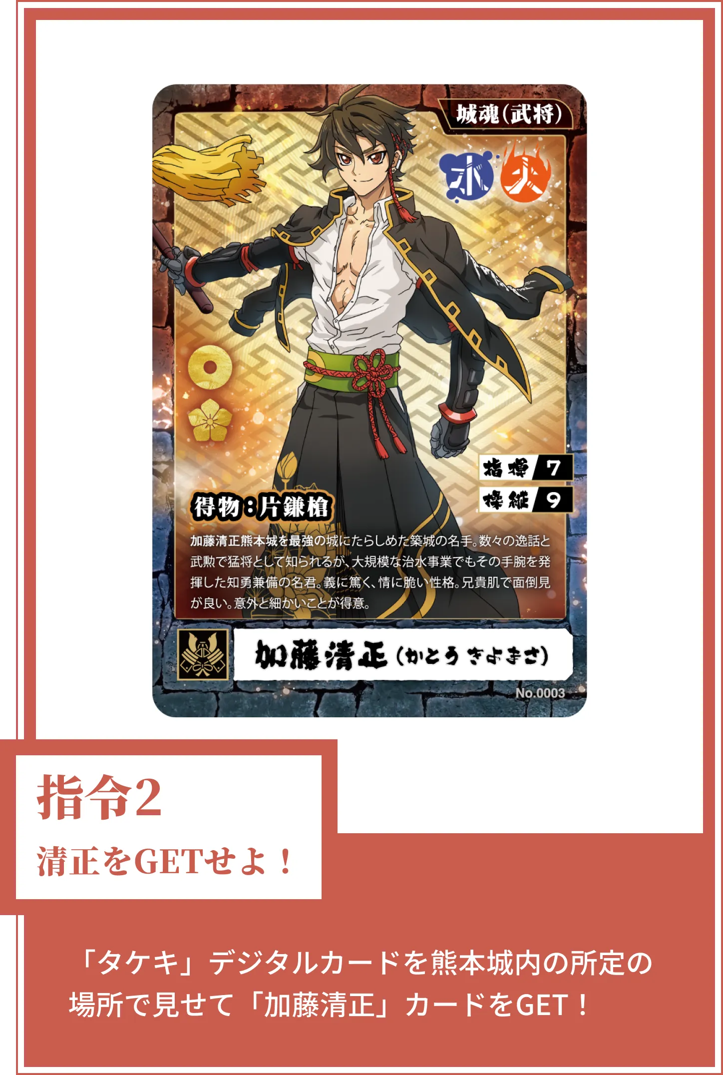 熊本城のカード配布場所※ でデジタルカード「タケキ」を見せて「加藤清正」リアルカードをGET
